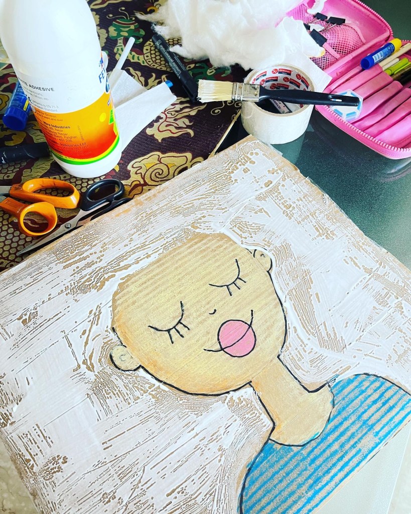 Draw out a face: use crayons to fill it up and a marker for the outline.
