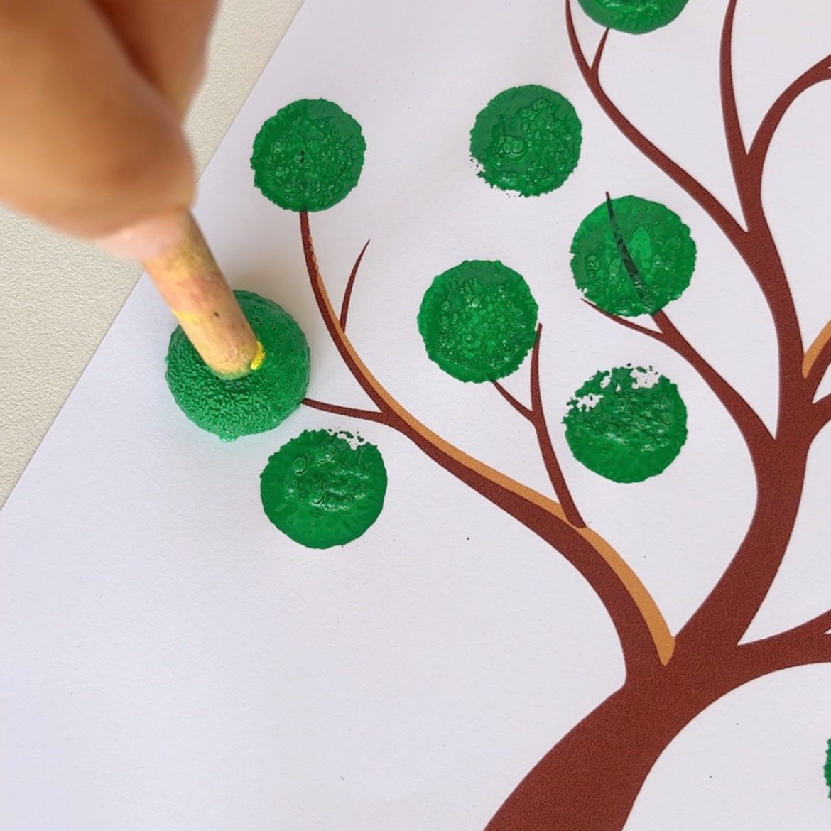 Pom Pom Painting: Attach pom poms to clothespins and dip them into paint to create colorful leaves on your tree. This technique adds a fun and tactile element to your artwork.